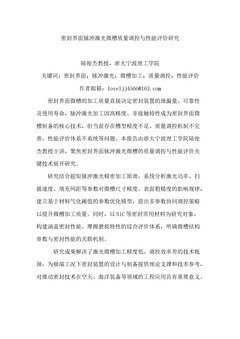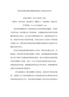 密封界面脉冲激光微槽质量调控与性能评价研究